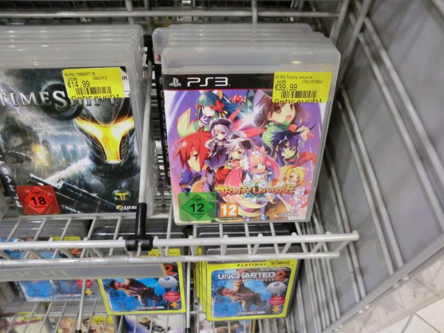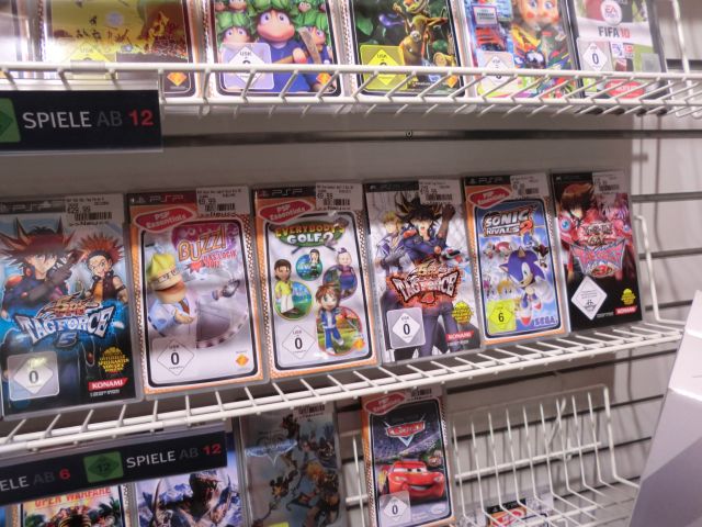 SAVE POINT 2主にゲームの話題を。PAGE | 310 309 308 307 305 304 303 302 301 300 299 | ADMIN | WRITE 2011.03.29 Tue 20:00:00 ドイツのゲームショップを見てきた話(2/2)。所変わってドイツはケルン市。 買い物に付き合うついでに、GameStopという店に立ち寄ってきました。 GameStopは欧米で展開しているビデオゲーム・カードゲームの大手チェーンです。かなりの大手らしく、どういう仕組か知りませんがメーカーと組んでは人気ソフトの限定版をGameStop限定で売ったりしているとか。最近では欧米三犬の配信を店頭で行っていたのが記憶に新しいですね。海外のポケモン公式サイトでGameStopの名前が掲載されていました(という事は、他の店舗での受け取りは不可能だったのかな…?)。 ポオオオオオオオオオオオオオオオオゥ! …いや、いきなり目に止まったので見てみましたが例のメガドラのソフトとは関係なかったです。ただのリズムゲームでした。 リズムゲームと言えば… ばんぶら! …の、海外版「Jam with the Band.」のドイツ語版を見つけました。国外では初代バンブラに相当するものはリリースされておらず、バンブラDXを基としたこのソフトが第1作の扱いです。日本語版とは曲がまったく異なるようですが、どうせ買うなら英語版を買おうと重い購入には至らず。(どうせ洋楽分からないし) ちなみにバンブラの右隣に置いてあるいかにも脳トレ系なソフトは「Gehirn Jogging」。GehirnのJogging。…どう見ても本家脳トレです。本当にありがとうございました。ドイツ語ってかっこいいですね ちょっと離れた所に「Mehr Gehirn-Jogging」なんてのも置いてありました。 カードゲームのコーナー。向こうでもポケモンはもちろん、遊戯王も人気なようです。 ゲームキューブソフト。ディスクの直径は国内と共通ですが、向こうではちゃんとしたDVDトールケースに入って販売されています。そのせいでパッと見、GCに見えなかったり。 「僕と契約して、ヴァイスかシュヴァルツを買ってよ!」 日本と同じ事やるみたいですね。Gartenpassの配信は4/22までだそうです。 もんはん! 向こうではMHPがMHFになるようです。フリーダム。 P3rdに相当するものはドイツでもスイスでも未発売でした。フロンティアのサービスは向こうじゃやってないのかな? タッグフォースまで売ってる!やっぱり人気なんですねー。 毛カビ。街並みがすごくヨーロッパです。 PS3の洋ゲーに紛れた、いかにも日本から輸出しました的な絵柄。色使いのせいですっごく目立ちます。 パッケージのせいで最初は「ディスガイアの海外版で名前が変わってるのか?」なんて思いました。日本でも同じ名前で出てるんですね。 サード製の互換Wiiリモコンとヌンチャク。 日本ではWiiリモコンの互換品となるとあまり見かけませんが、これ以外にも数種類置いてありました。 一番目立つのはこれでしたけどね。シースルー仕様で、通電すると光るらしいですよ。 だいたいこんな感じの所でした。…と言いたい所だが、 後日、別の場所で偶然GameStopの店舗を見つけたので何か無いかと入ってみました。品揃えは似たようなものでしたが、↑の店舗では見つけられなかったモノもいくつかありました。 アザム!日本のような凝ったパッケージではなかった。 そしてモンハン3が置いてありました(後ろ中央)。となると、今はP3rdのローカライズが行われているのでしょうね。 … ⇛驚愕する ドイツでも売ってたんですねー。北米では「R-TYPE COMMAND」なるタイトルに変更されたと聞きましたが。 にしてもこのパッケージのアートワークは見た覚えが無いぞ…? とまぁ、お前海外に行ってもゲームか、と言われてしまいそうですが( ゲームも含めて色々見てきました。楽しかったですよ。 PR TrackbacksTRACKBACK URL : CommentsComment Form |