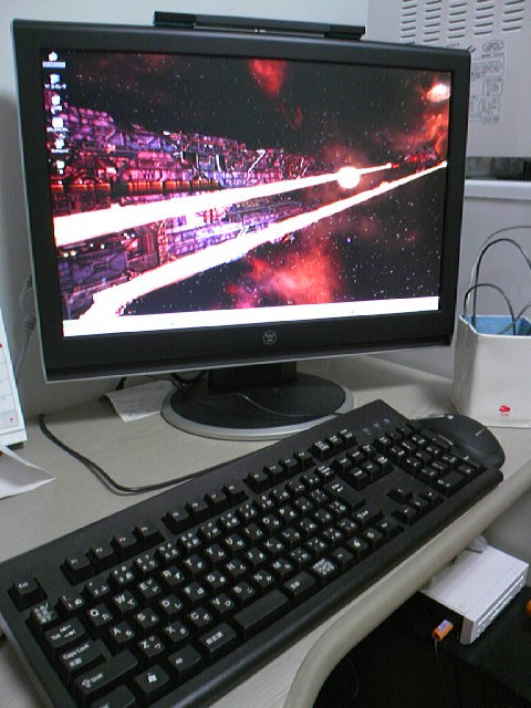 机の上、モニタ外観。入力を切り替えてWiiの画面も表示できる。 ちなみに今の壁紙はこれ。 PCの上にWiiを横置き。サイズ的にもぴったり。 ちなみに下の白い物体は外付けHDD。 2008.04.11 Fri 22:52:38 バンブラ再開のお知らせ( ゚д゚) … ( ゚д゚ ) http://www.nintendo.co.jp/ds/abbj/intro/manga/topics09.html ( ゚д゚) … ( ゚д゚) キタ━━━━━━( ゚∀゚)━━━━━━ !!!!! 旧版との互換性はあるのか、それだけが気がかりだが 今は素直に楽しみにしておく事にしようと思う |