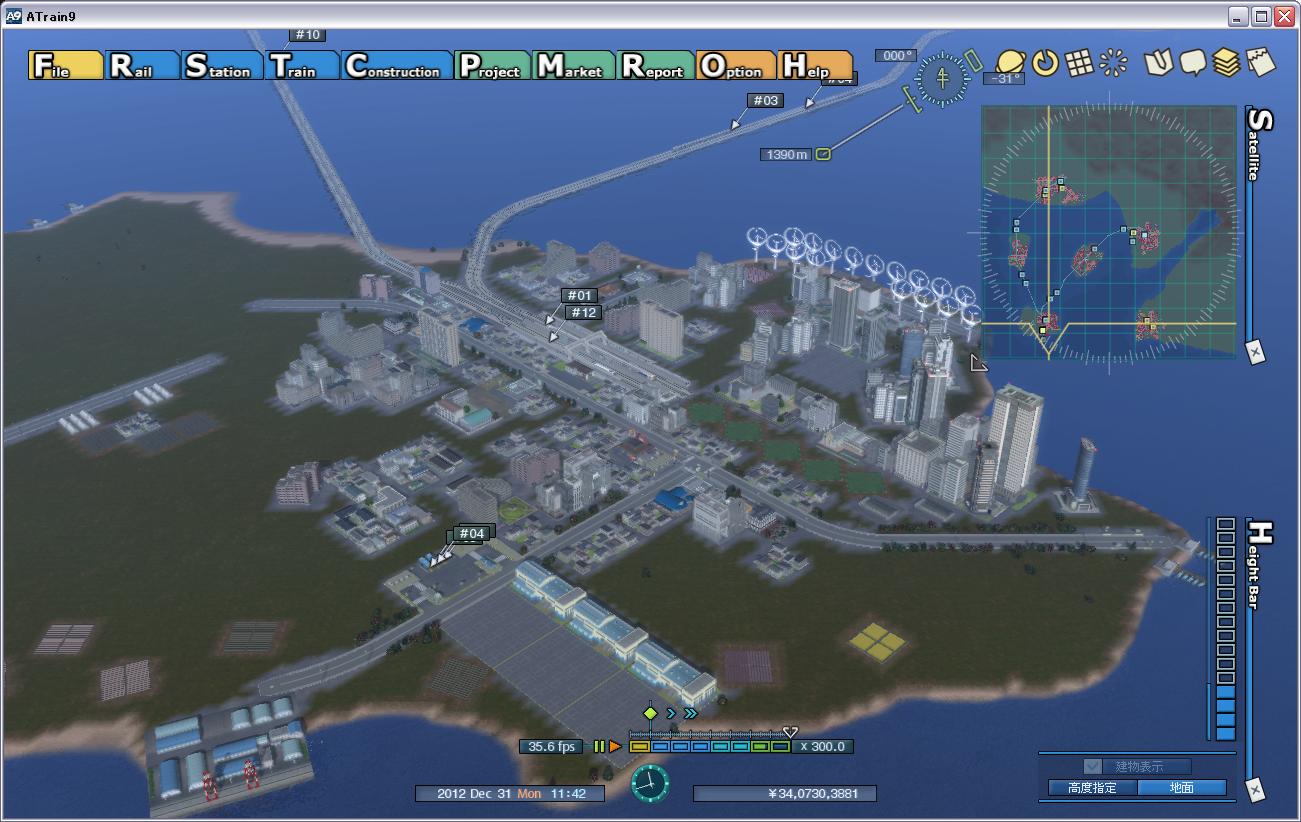 その結果…現在3年目の12/31。決算を控えて今年度の利益は200億を超える見込みです。 …と言っても、その分はきれいに借金返済に充てられ手元にはそんなに残ってないのですが。続きは追記。 マップ中央よりちょっと東寄り、橋へと続く路線のターミナル(奥の街中)と車両基地(手前)です。 駅と車庫の間、元々あった複線のカーブの内側に入出庫用の専用線を追加しています。夜になると乗客をターミナルの1番線(海寄り)で降ろし、専用線経由で入庫します。本線を左側通行する列車を妨害しない為の苦肉の策です。 車両基地の端っこには貨物を停めるスペースも確保。旅客列車が引き上げた後に何も通らない線路を悠々と往復します。 見ての通り飯能状態となっていますがこれは想定の範囲内。元々駅から先が発展する事は目に見えていた上、延伸すると今のホーム数では絶対に足りないので資金が貯まり次第駅を地下化します。10両対応6線くらいの大形駅になる予定。 ちなみに車両基地を駅からちょっと離したのは、駅を地下化した際に地上へ出るスロープを作る距離を確保するためでもあります。海のすぐそこで車両のサビ対策が厳しそうですが現場には頑張って頂きましょう( もう一方の本土側ターミナル。こちらは地上駅のまま拡張、延伸を行う計画なので近接して車両基地を設置。入庫/出庫時と通常運行時で進行方向の折り返し設定が違うので、ここで初めて個別発車設定を使わされました。とは言っても2つの路線は駅間的に結構似てるので、それほど面倒という訳でもなかったですね。 他にはこれと言って特筆事項無し。特急列車は1番線から、普通列車は2番線からの発車となります。 所変わってマップ南端の島。西側に伸びる貨物線(画面左上)を複線化・旅客化し集中的に発展を促しています。駅の先の空間は延伸する訳ではなく、将来10両編成対応の始発駅に建て替える為です。 マップ中でも結構画面外に近い場所に港が建てられるので、工場と併設し豆腐を絶賛輸出(画面左下)…したはいいのですが、タイムスケール60倍のせいで貨物船が予想外の頻度で来てしまいます。しかも土日祝日も止まらない。常に需要過多でフル稼働を続ける工場から、なんとかトラックで港の範囲外に資材を運び出しています。資金が貯まり次第、工場の増設と工業系子会社を集中的に建設する予定。 今回使用した車両たち。 東側の路線には、内外房線を意識してJR東E257(特急)とE217(普通)、 西側にはJR西の"オーシャンアロー"283系(特急)とJR四国"マリンライナー"5000系(普通)を使用しました。こちらはどっちも海にゆかりのある列車名で、しかもマリンライナーの後部車両(223系)を見ると阪和線っぽい!…かもしれません。西の鉄道については詳しくないのです。 次は4年目。ようやく初期投資のための借金を返し終わり、いよいよ本格的開発に乗り出す…のか? PR TrackbacksTRACKBACK URL : CommentsComment Form |